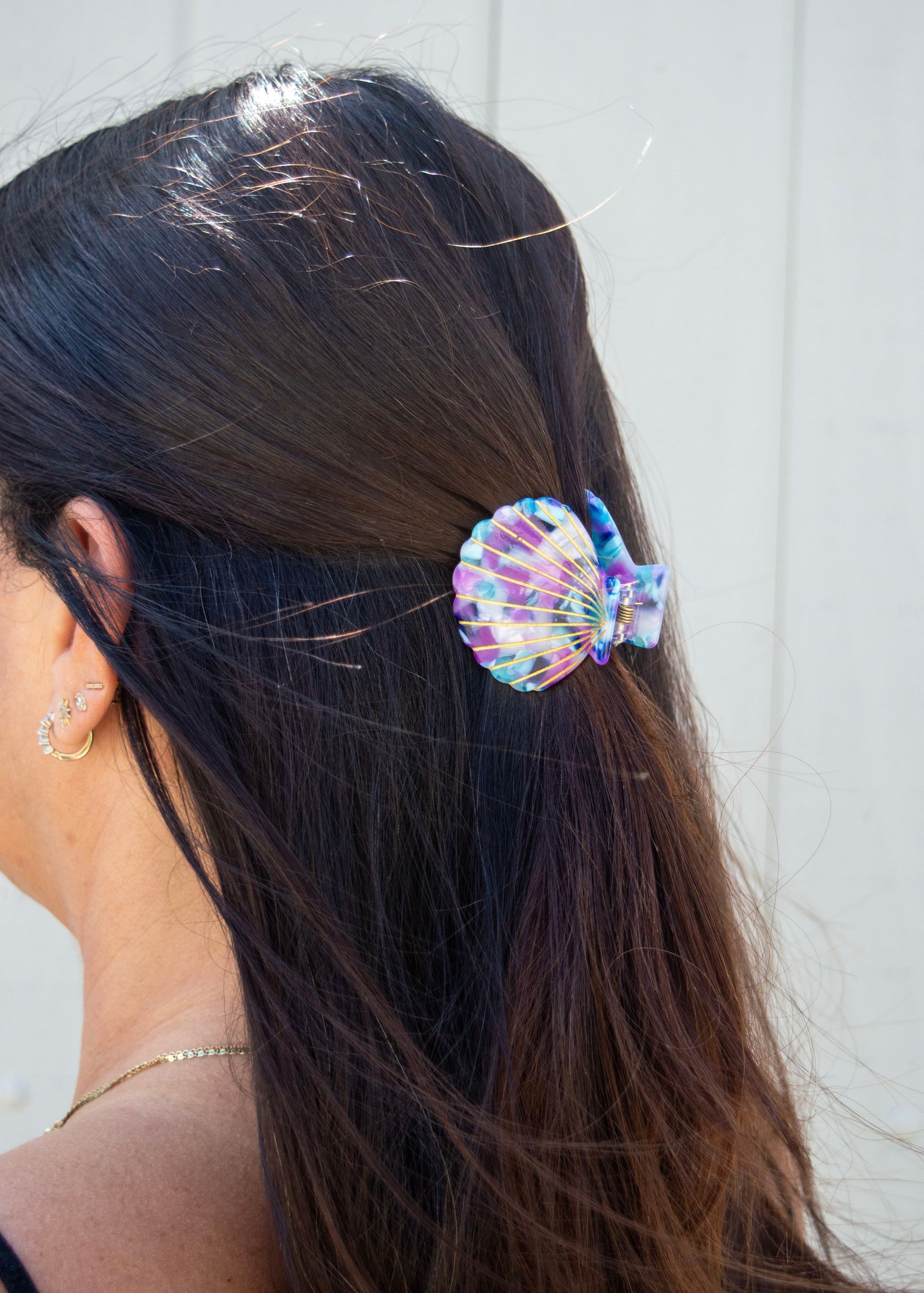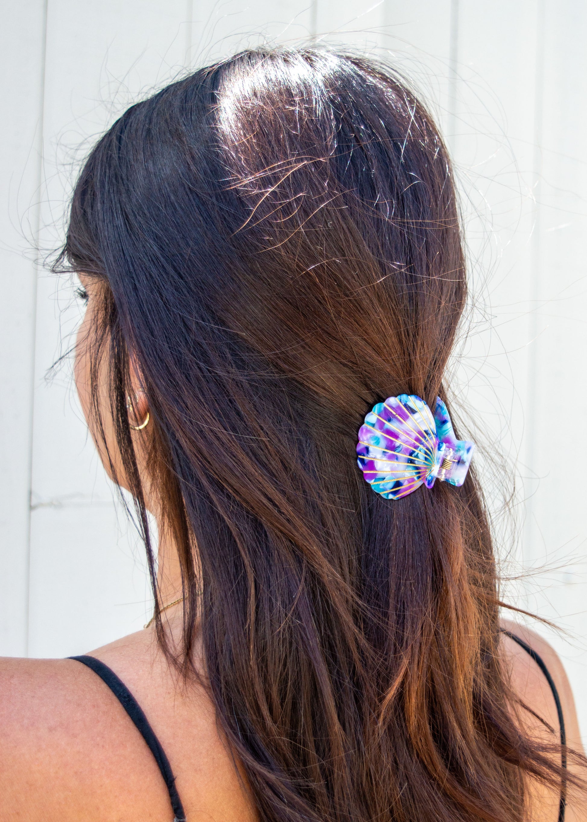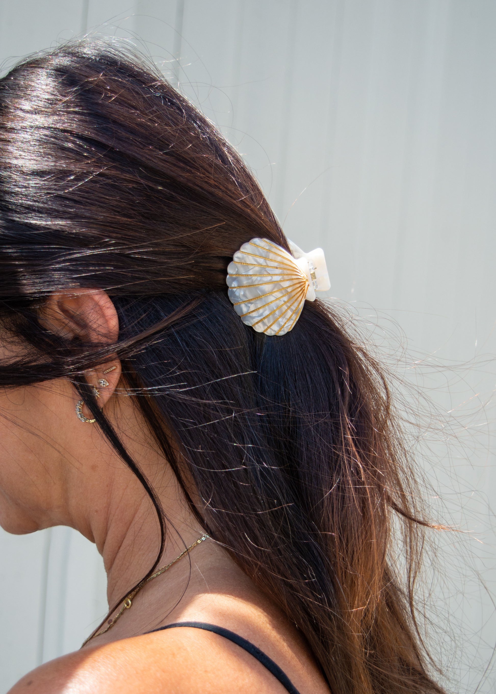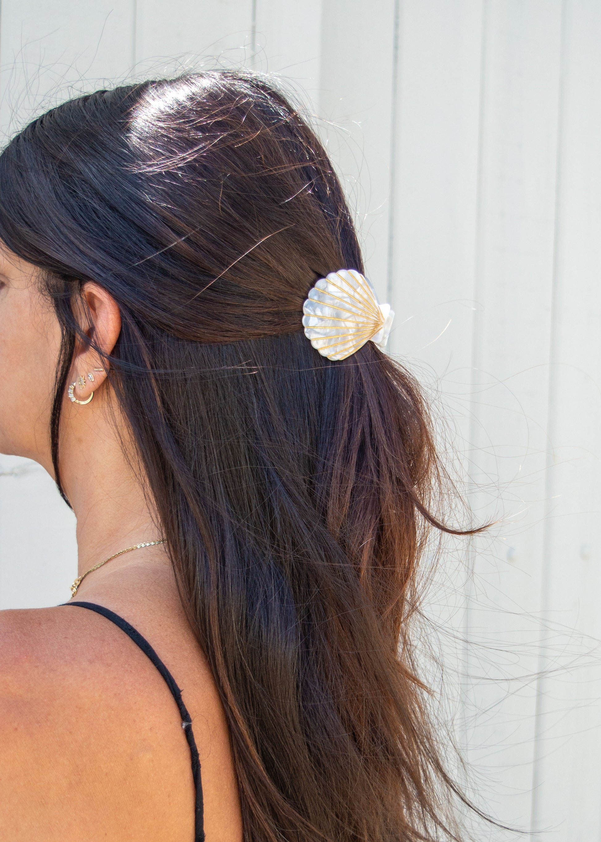 Our Caspian Shell Claw, is a casual and simple hair accessory that will elevate your look. Add to a side swept tendril or clamp into a topknot for endless versatility. Accessorize with Caspian for a day at the beach, cocktail party and everything in between.