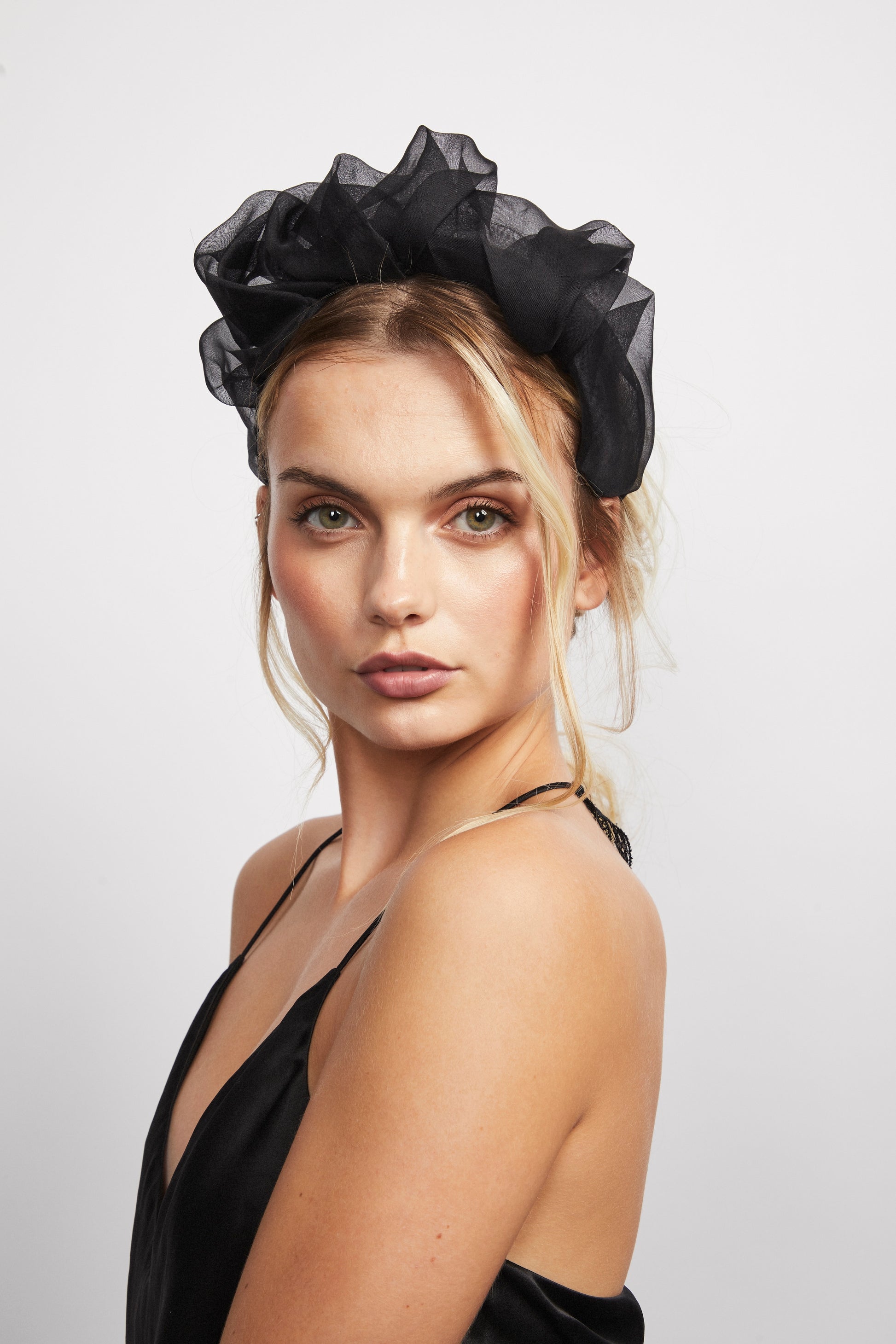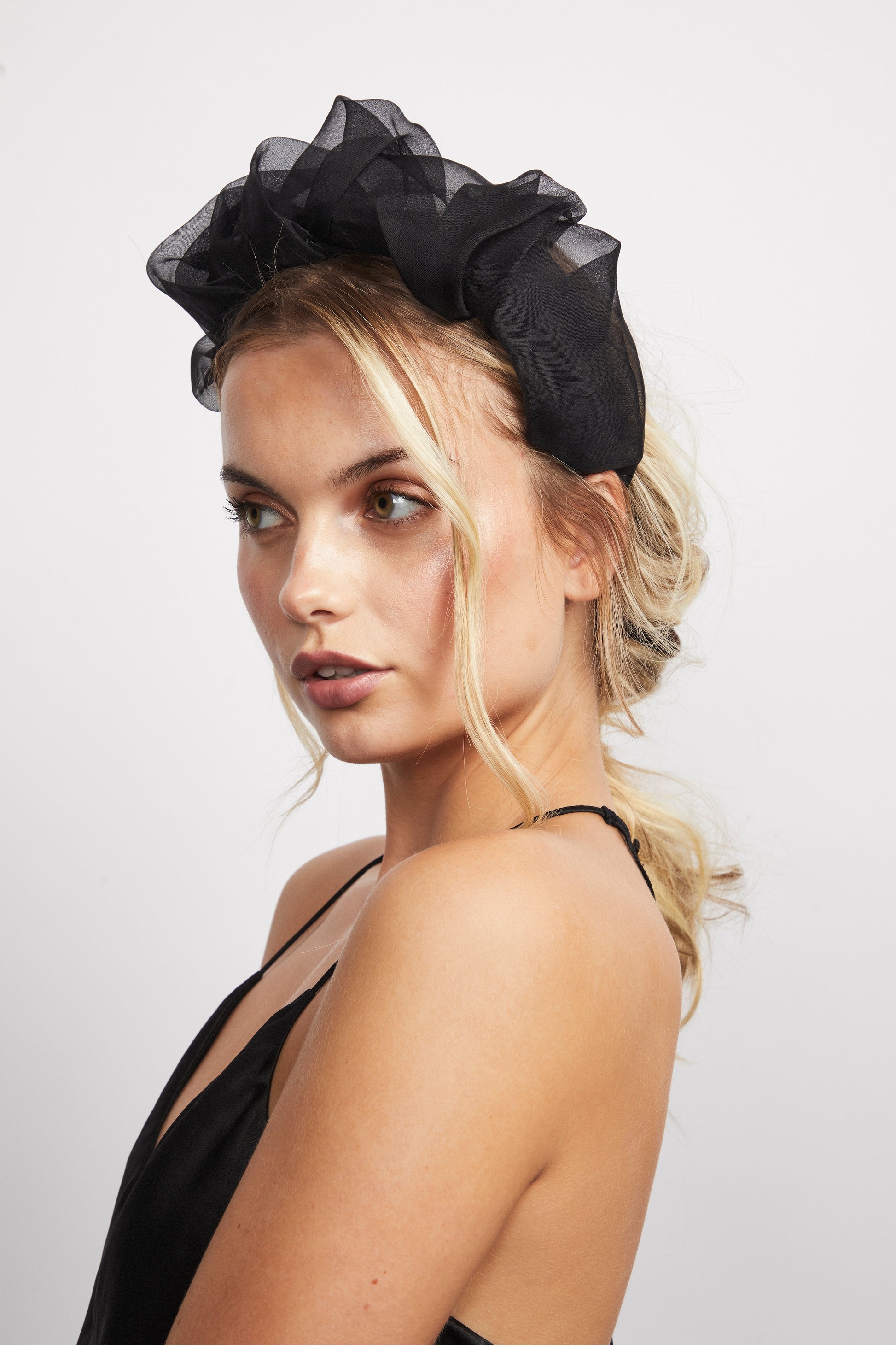 - 100% Black Silk Organza Bridal Headband