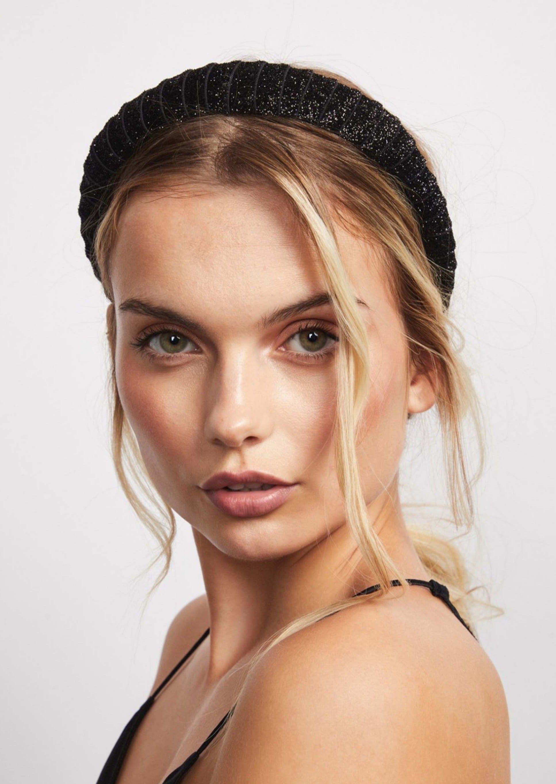 Add a little sparkle with our Marin headband. Crafted from a black metallic tinsel ribbon, this headband is hand wrapped around a lightly padded base creating a rich and chic luster. Party time!